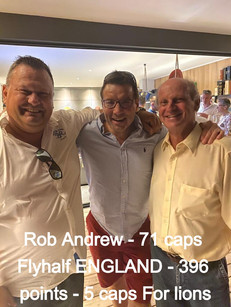 Andrew Caddick ( ENGLAND opening bowler - 62 test / 234 wickets / 54 ODI / 69 wickets) , Rob Andrew (71 caps Flyhalf ENGLAND - 396 points - 5 caps For lions ),